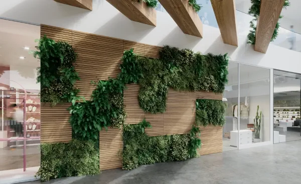 La incorporación de vegetación, bien con muros o cubiertas verdes, jardines verticales, patios interiores, no solo contribuye a mejorar la calidad del aire, sino que además refresca el ambiente y nos resulta más agradable. Y es que el contacto con las plantas en el entorno construido está estrechamente relacionado con la disminución del estrés, con el aumento de la concentración y con el buen humor.